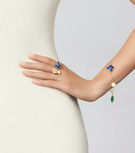 [Royal Jewellery ]LUCKY SPRING GOLD BLUESTONE WHITE MOTHER-OF-PEARL BRACELET