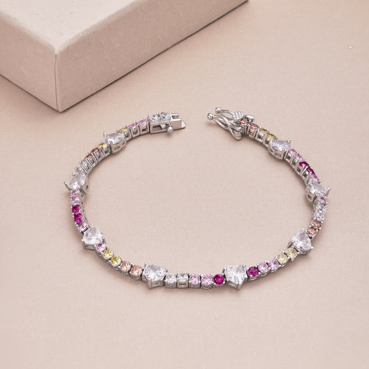 [Royal Jewellery]Luxurious Colorful Romantic Heart Shape Lover Bracelet