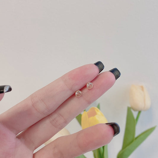 [Royal Jewellery]Stylish Shiny Round Center Stone Stud Earrings
