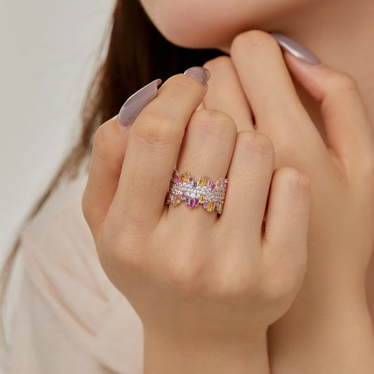 [Royal Jewellery]Mixed Colorful Square Staggered Rings
